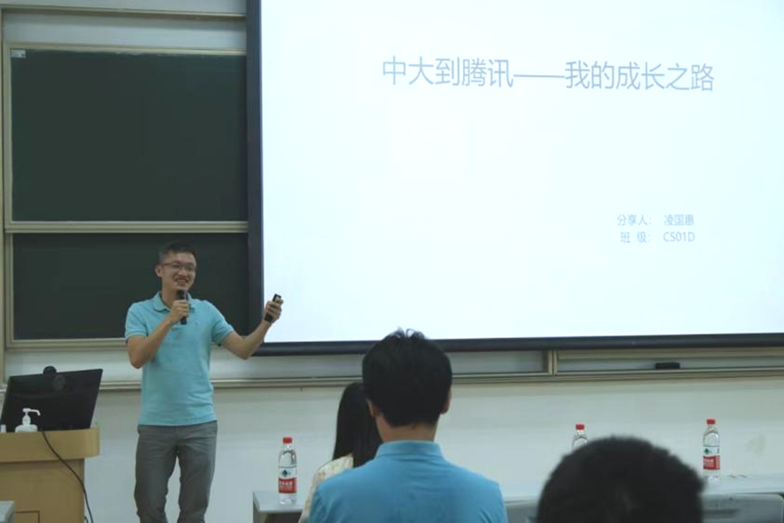 2024年10月18日,第一期活动以“代码人生:腾讯工程师分享软件工程师成长之路”为主题,在广州校区南校园逸夫楼408举行。本次活动由学院职业导师、腾讯微信技术架构部数据中心专家工程师凌国惠校友主讲。