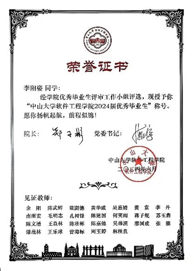 2020级本科生李阳姿:优秀毕业生