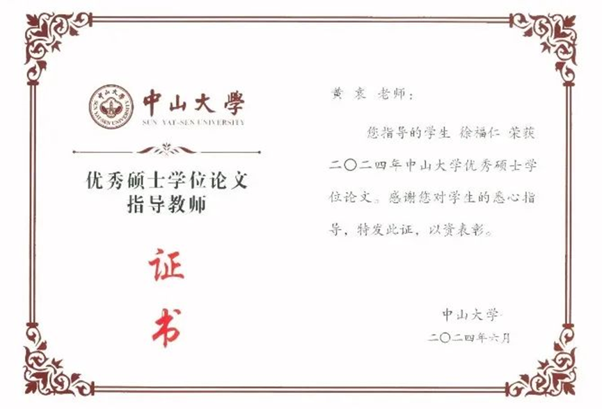 导师黄袁:优秀硕士学位论文指导教师