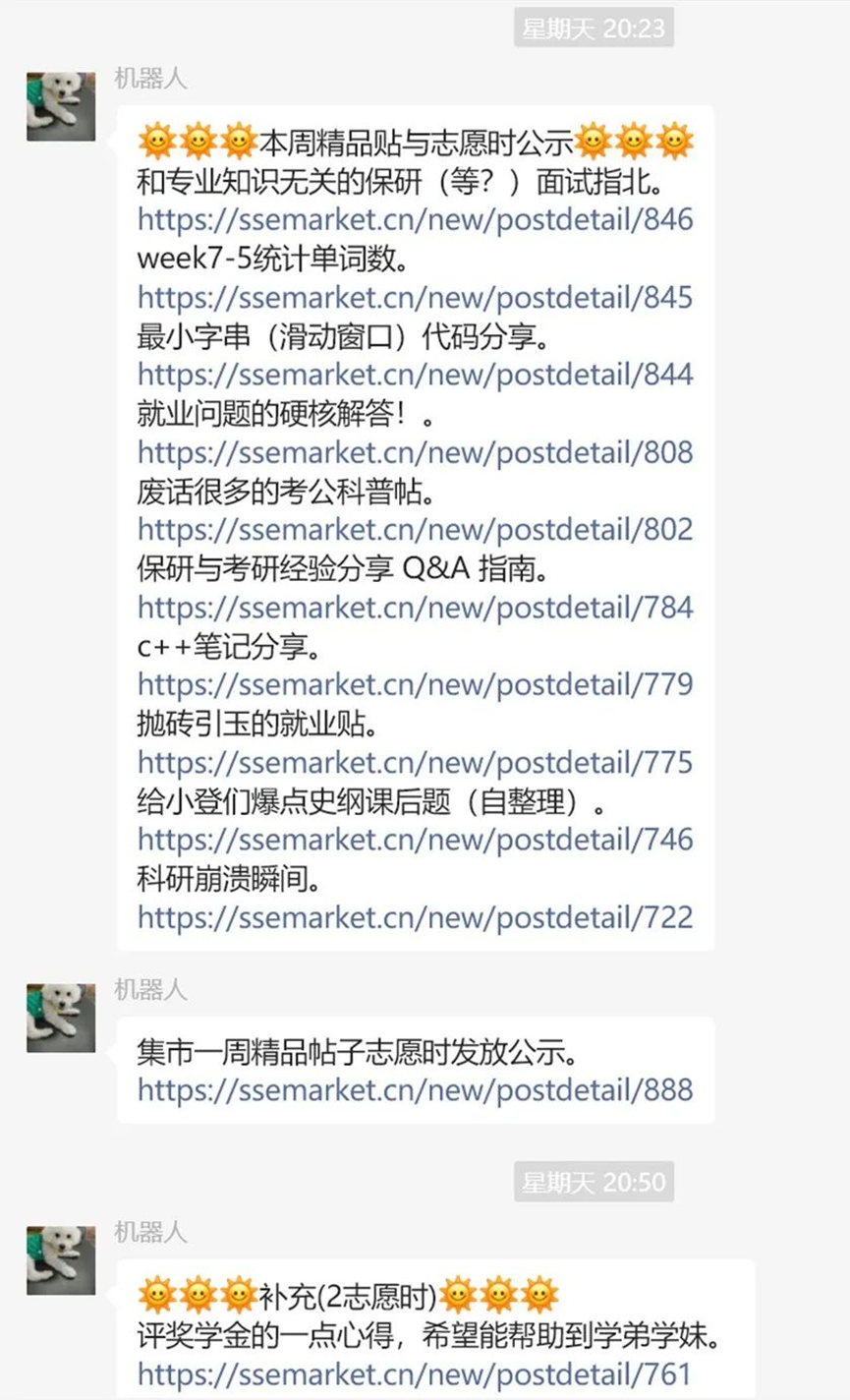 在“SSE-Market”平台,大家可以发表日常吐槽,向老师同学们打听求助,进行课程学习或科研交流,了解院务、实习、就业招聘等多方面的信息。同时,大家还可以在课程专区中对指定老师进行提问,提出自己对课堂教学和课程设置的想法和建议。这些内容都将会留存在平台中,让接下来学院的每一届同学都能获取到学长学姐留下的宝贵经验。