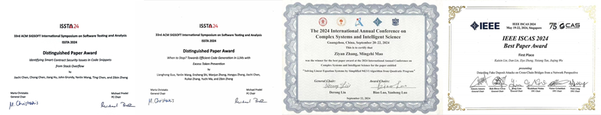 坚持“以赛促学、以赛促研”,学生参与学科竞赛获得中国软件服务创新大赛一等奖、中国可信区块链安全攻防大赛冠军、CCF中国数字服务大会服务计算创新大赛一等奖等国家级以上赛事奖项20余项,获得省部级以上赛事奖项60余项。