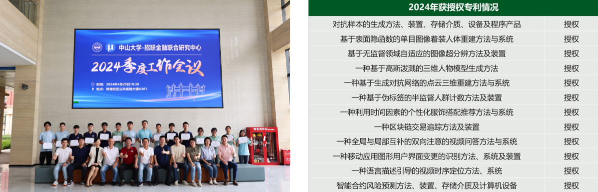 中山大学-招联金融联合研究中心会议活动(左)2024年学院获授权专利情况节选(右)