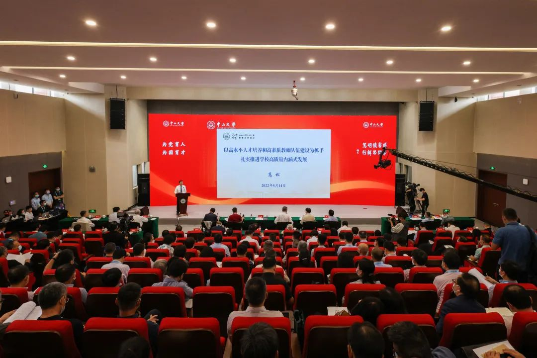 5月14日上午,中山大学2022年春季工作会议在珠海校区拉开帷幕。本次大会主题聚焦“人才培养”,校长高松院士作了题为“以高水平人才培养和高素质教师队伍建设为抓手 扎实推进学校高质量内涵式发展”的大会报告,提出要总结和传承中大文化,守正创新,继往开来,以立德树人为根本,以队伍建设为核心,以学科交叉融合为重点,以院系建设为基础,以体制机制改革为动力,稳步扎实推进学校高质量内涵式发展。