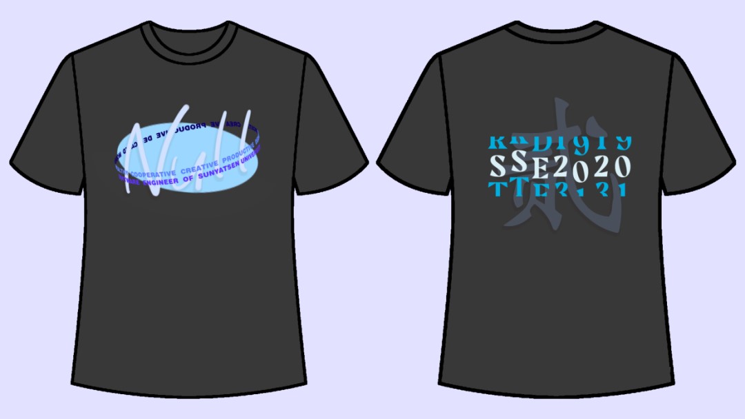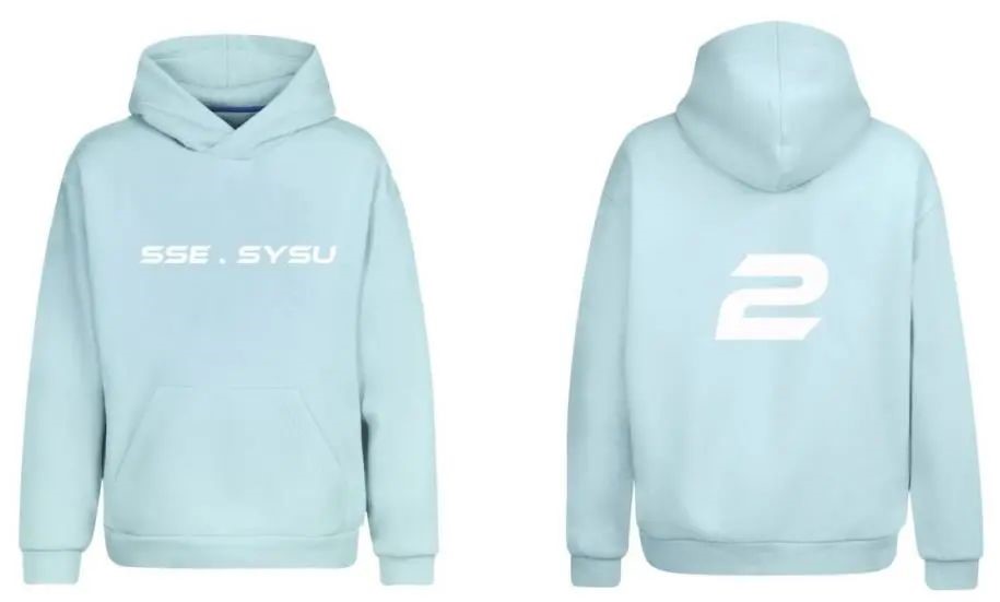 (方案1)班服使用天蓝色为主色调,是我们班同学清新自由、青春活力的象征。班服正面SSE.SYSU是中山大学软件工程的英文缩写,显得简约直观,正如同我们专业的同学编写程序时追求的简约高效一般。班服的背面,是代表我们班级的数字2,与整体简约的风格相契合。整件班服简单而不空洞,引人注目且美观。