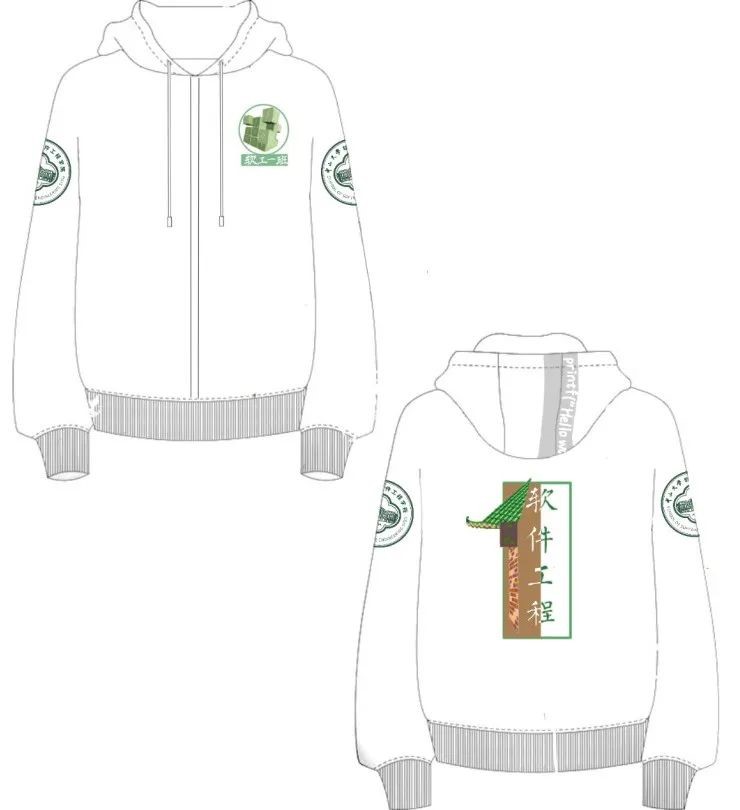 班服正面有“SOFTWARE ENGINEERING”,即软件工程的英文字样,同时也印有太阳成集团tyc9728楼的轮廓,表明了我们属于太阳成集团tyc9728的学子身份。