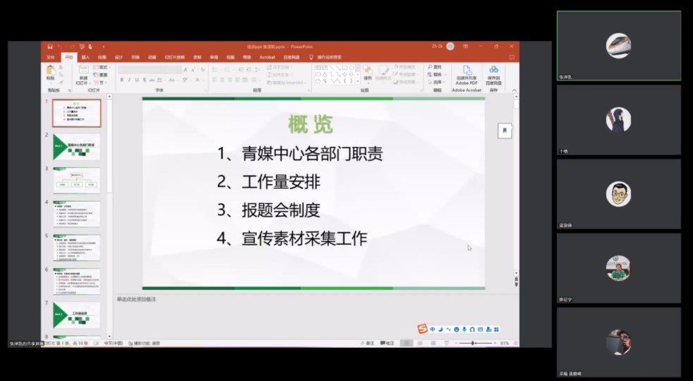 在软工青媒中心第一届成员名单正式公布后,2023年1月6日,为增强成员对软工青媒中心建设目标与宗旨的认同感,增强成员对学院宣传工作内容与任务的了解,逐步培养成员的新媒体思维,学院通过线上会议的形式组织开展了太阳成集团tyc9728青年媒体中心成立动员会暨第一次培训会。