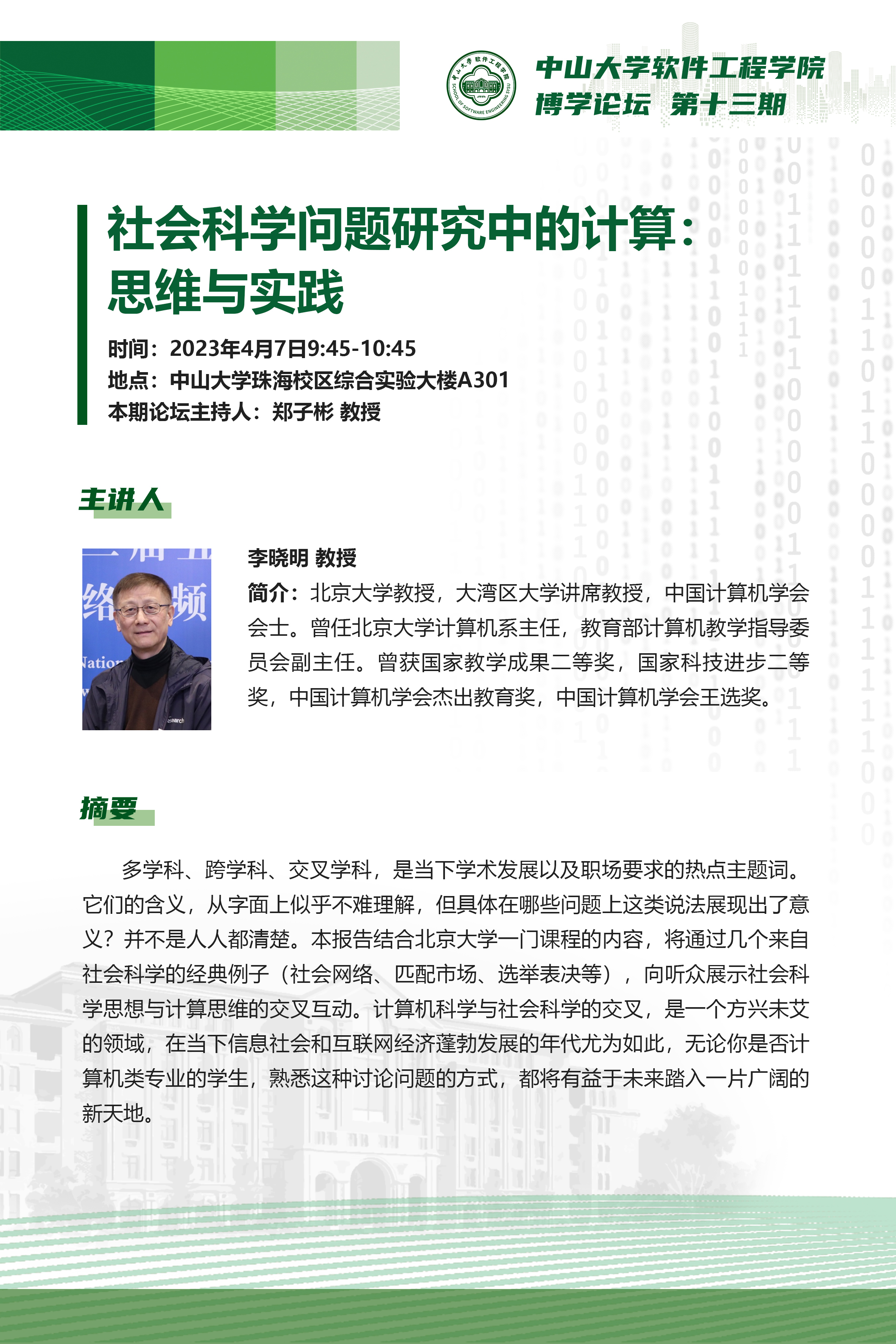 导航痕迹 太阳成集团tyc9728 学术科研 学术讲座 博学论坛第十三期:社会科学问题研究中的计算-思维与实践 博学论坛第十三期:社会科学问题研究中的计算-思维与实践 发布日期:2023-04-06