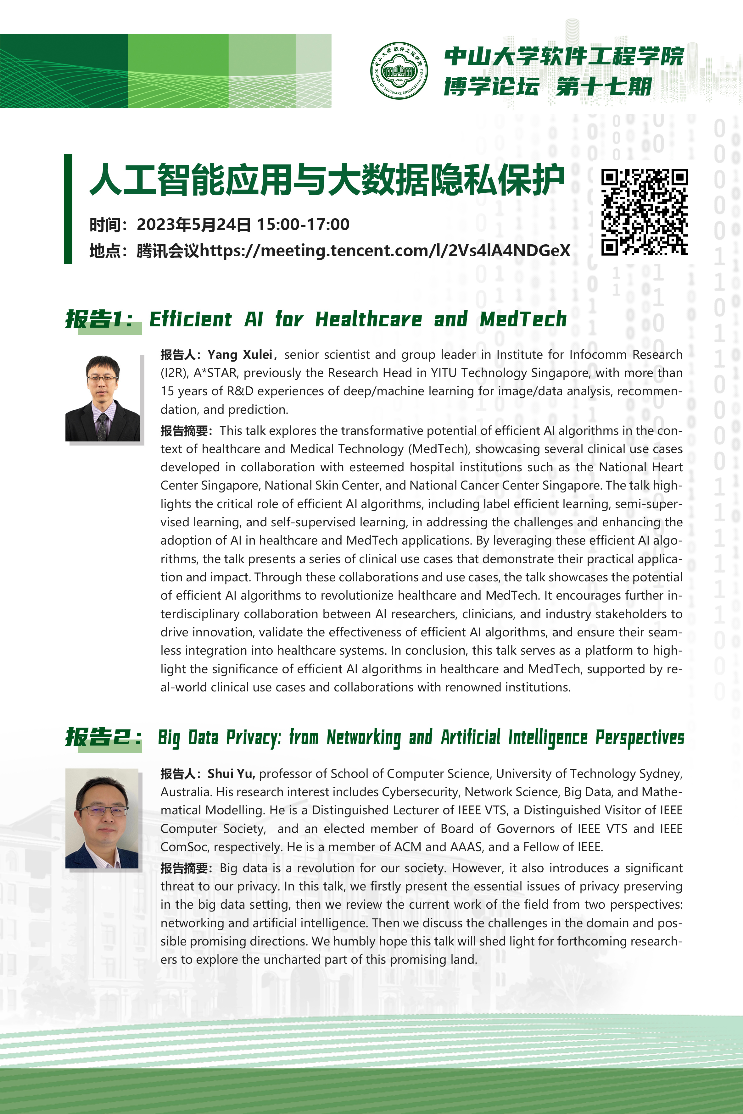 导航痕迹 太阳成集团tyc9728 学术科研 学术讲座 博学论坛第十七期:人工智能应用与大数据隐私保护 博学论坛第十七期:人工智能应用与大数据隐私保护 发布人:林柱良 发布日期:2023-05-23