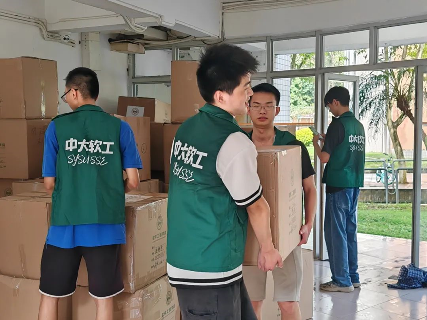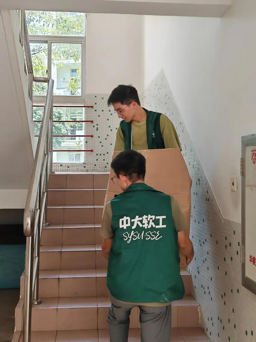 712日,一批志愿者提前等候在珠海校区逸仙大道,手举指引牌帮助每位下车的2023级本科生顺利找到对应的宿舍楼栋;另一批志愿者与学院党委蓝澍德副书记、团委书记林柱良老师一起,顶着炎热的天气,将2023级女生未搬完的行李齐心协力一波接一波搬上楼。