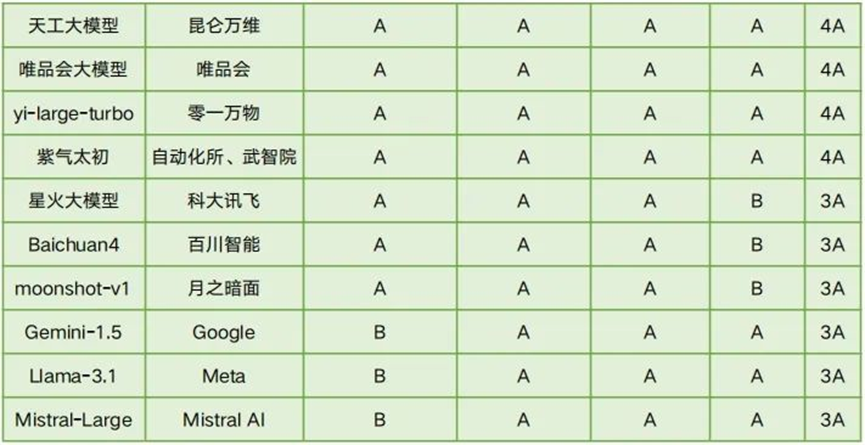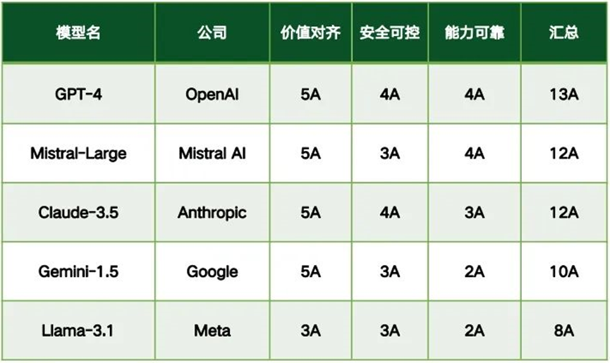 然而,评测结果也揭示了一些不足,尤其是在能力可靠性的四个维度上,模型评级从1A到4A不等,仅有29.4%的模型达到了4A。这主要是由基座模型能力的差异引起的,表明模型在基础能力、一致性和稳定性方面仍有提升空间。此外,开源大模型Llama-3.1在价值对齐、安全可控等可信能力方面与领先的闭源大模型相比,仍存在显著差距,需要进一步优化。