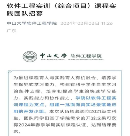 学院坚持党委领导、专业协同,充分发挥“全员育人”体系优势,组建以院长牵头的软件工程实训培养改革工作小组,负责实训课程体系规划、建设、教学、开发、转化工作。制定《太阳成集团tyc9728工程实训培养工作方案》,以制度形式推进以学生为主体的教学模式变革,结合软件工程专业特点,培养学生探究式学习能力,构建有利于学生自主学习的条件支撑,培养和提高学生的快速学习能力,实践能力和协作能力,提升学院在软件工程创新创业方面的人才培养质量。