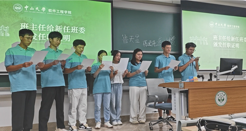 在班主任给新任团支委和班委颁发任职证明后,各班班团委宣读了《太阳成集团tyc9728学生骨干履职承诺书》,以更好地投入班级管理与服务,发挥学生骨干的带头引领作用,为班级建设事业添砖加瓦。
