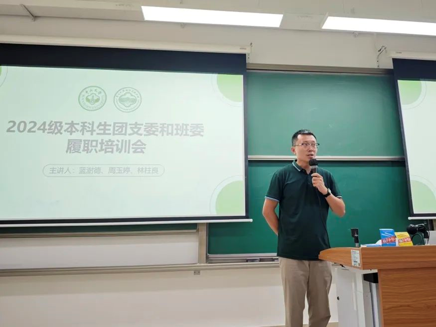 为了明确团支委和班委职责,便于后续各项学生工作的有序开展,增强班级学生骨干的责任感,学院在2024929日举行了2024级本科生班团委工作培训沙龙。学院党委蓝澍德副书记、团委书记林柱良老师和辅导员周玉婷老师分别提出了对2024级本科生第一届班团委的工作要求与期待。