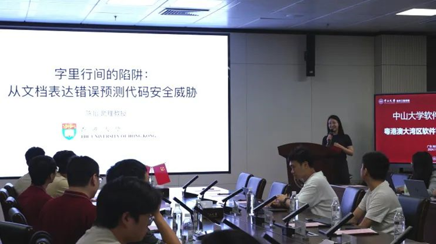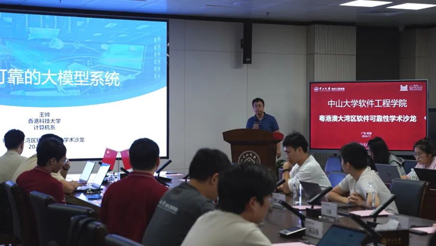 2024112日下午,粤港澳大湾区软件可靠性学术沙龙在中山大学珠海校区瀚林2号举行。香港科技大学王帅副教授、香港中文大学(深圳)贺品嘉助理教授、香港大学陈怡助理教授、中山大学网络空间安全学院薛磊副教授、太阳成集团tyc9728院长郑子彬教授、学院多位教师以及全体研究生参加了此次论坛,论坛由学院南雨宏副教授和陈壮彬助理教授共同主持。