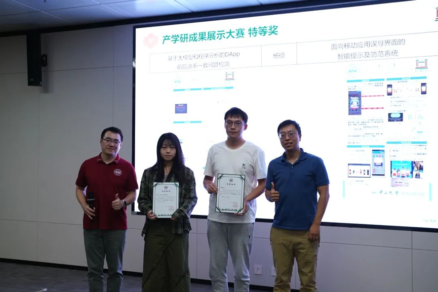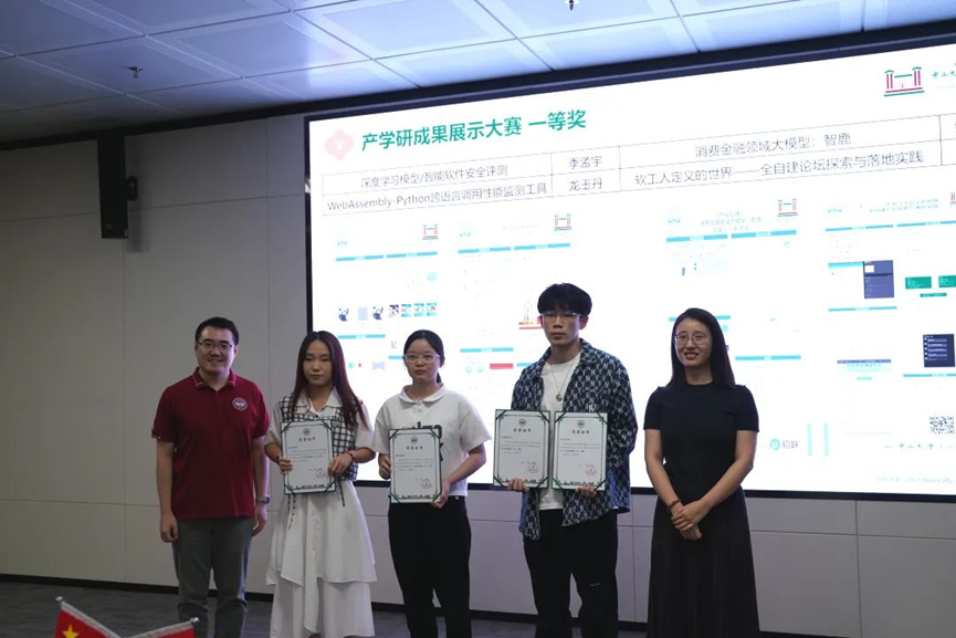 论坛最后,学院进行了产学研成果展示大赛的获奖名单公布及颁奖活动,由参会嘉宾向获奖同学颁发奖状并合影留念。