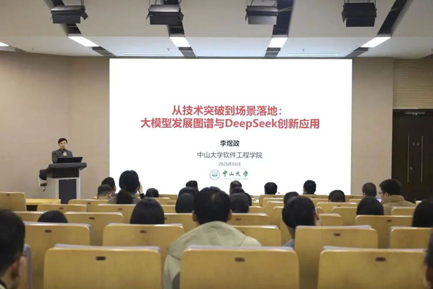 李煜政老师以“从技术突破到场景落地:大模型发展图谱与DeepSeek创新应用”为主题,从大模型技术演进路径切入,系统解读了DeepSeek等人工智能工具在教育领域的应用场景,包括智能教学辅助、数据分析、个性化学习支持等,并结合学校智慧校园建设需求,提出了“AI+教育”深度融合的实践方向。