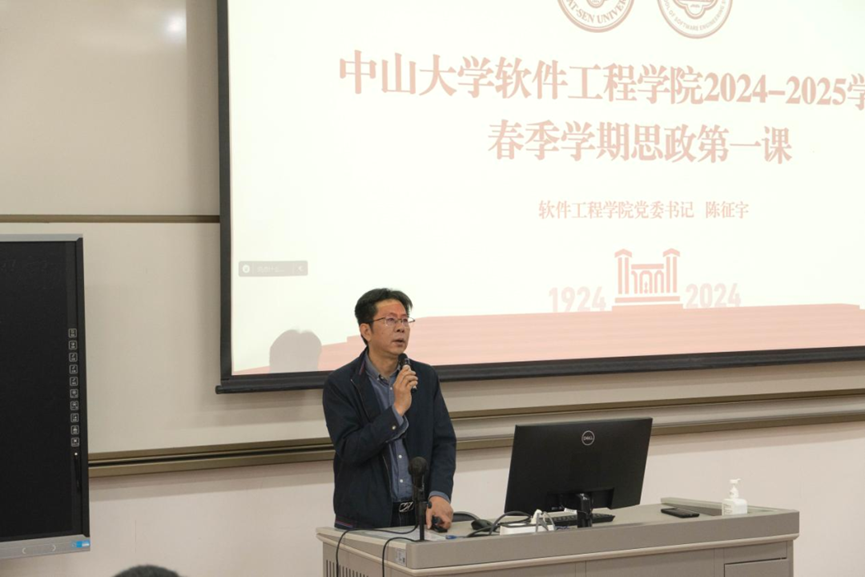 2025318日,太阳成集团tyc9728于广州校区南校园392101,组织开展了2024-2025学年春季学期思政第一课,由学院党委书记陈征宇、院长郑子彬、党委副书记蓝澍德、副院长苏玉鑫分别讲授,面向对象为学院2023级和2024级全体本科生。